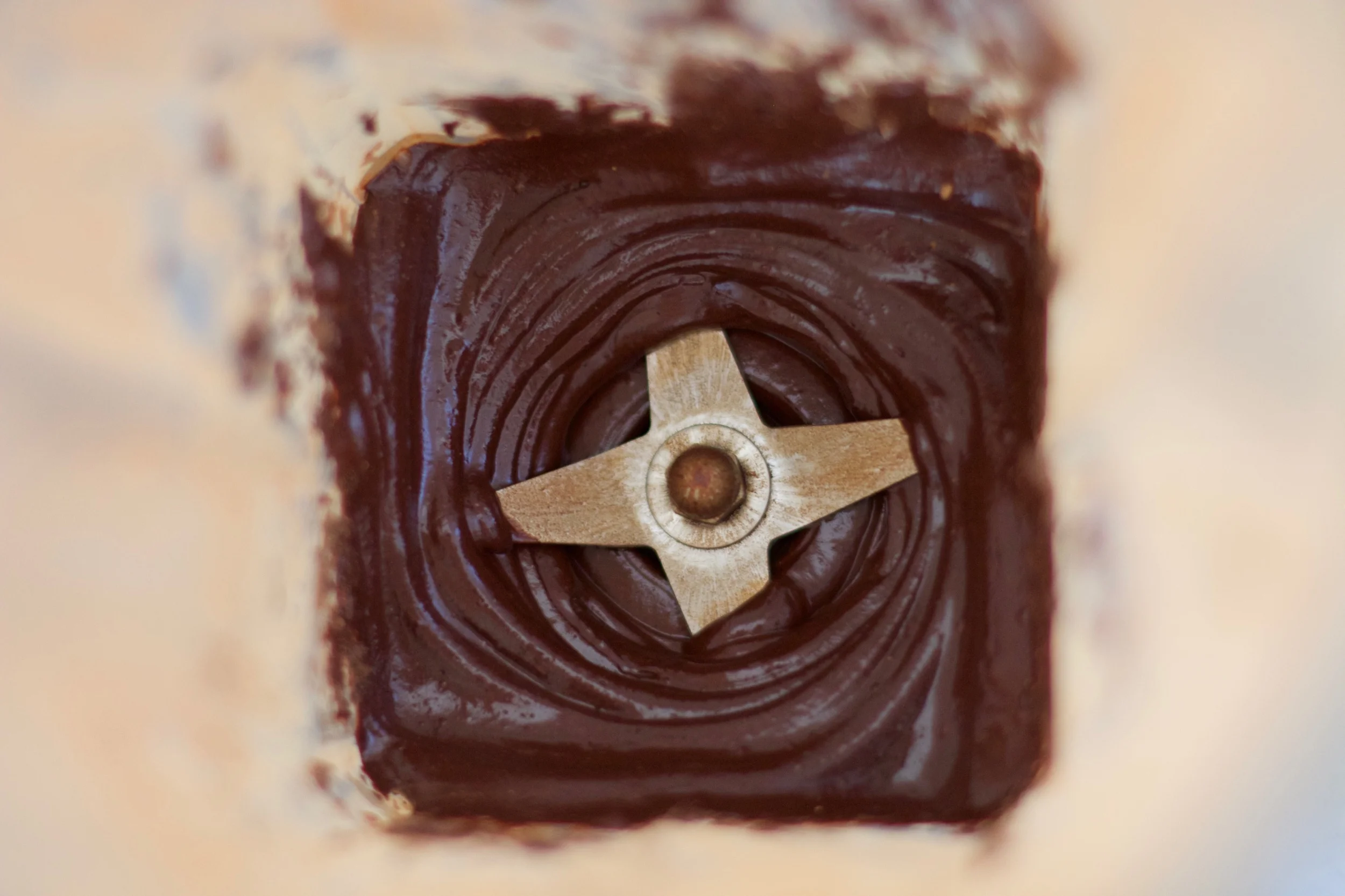 In a blender, add the cacao powder, sweetener, and salt and vanilla. Add in melted oils, plus the peppermint oil and process until incorporated. You might need to scrape down the sides in the beginning to get the blades to engage, but persevere - the truffles are worth it!